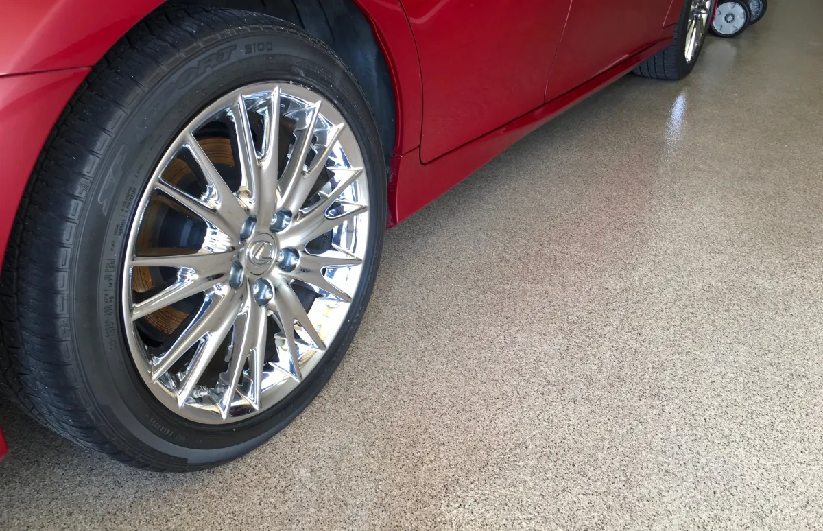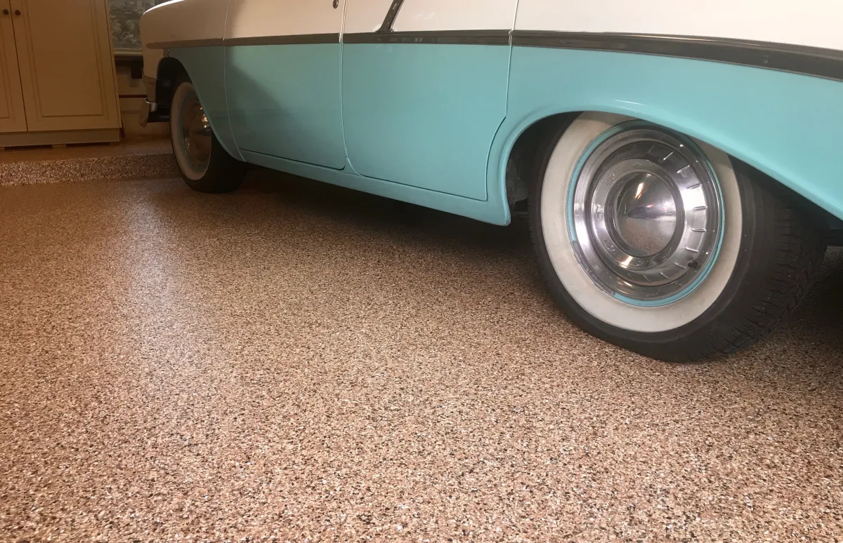 Our signature Two-Day Installation System (learn more about why the differences do matter vs. a one-day system) focuses on thorough concrete preparation, along with the utilization of the highest-quality industrial grade epoxy, polyaspartic, and urethane coating products. Industrial coatings manufacturers and contractors prefer such techniques and products because they are critical to long-lasting systems that are extremely durable, stain-resistant, and easy to clean. Our customers can choose from designer color finishes to look like Granite, Quartz, Stone, Metallic, or Terrazzo. Most importantly, we stand behind our professionally installed system with a "Lifetime Satisfaction Warranty" that is guaranteed against hot tire pick-up.